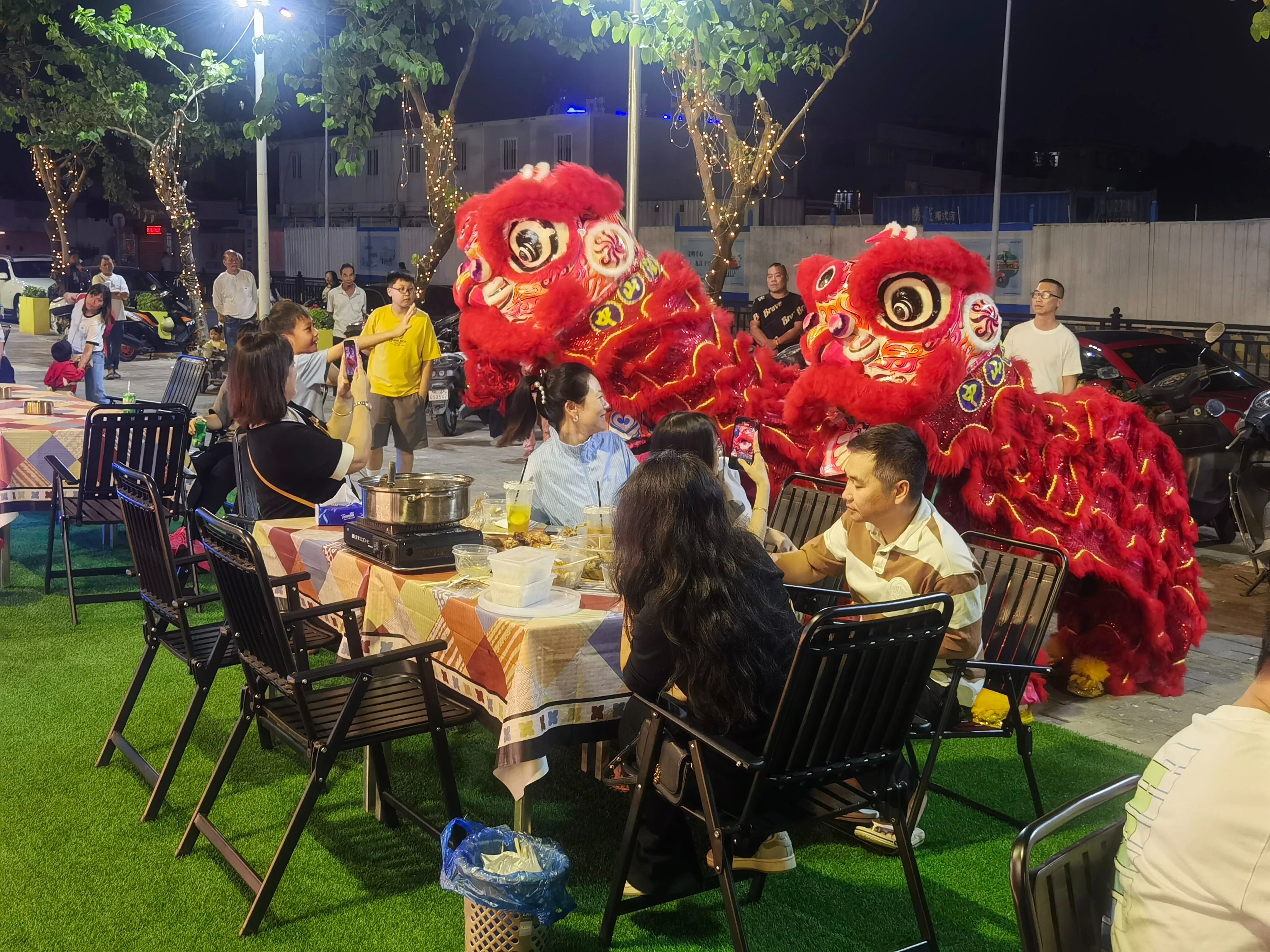 “真沒想到,以前這兒堆滿垃圾、長滿草,如今變成了熱鬧的夜市!”家住附近的鄭先生手里拎著剛買的小吃,笑著說:“既有好吃的,還有醒獅表演,以后晚上散步不用愁沒去處了,帶娃來也方便。”
