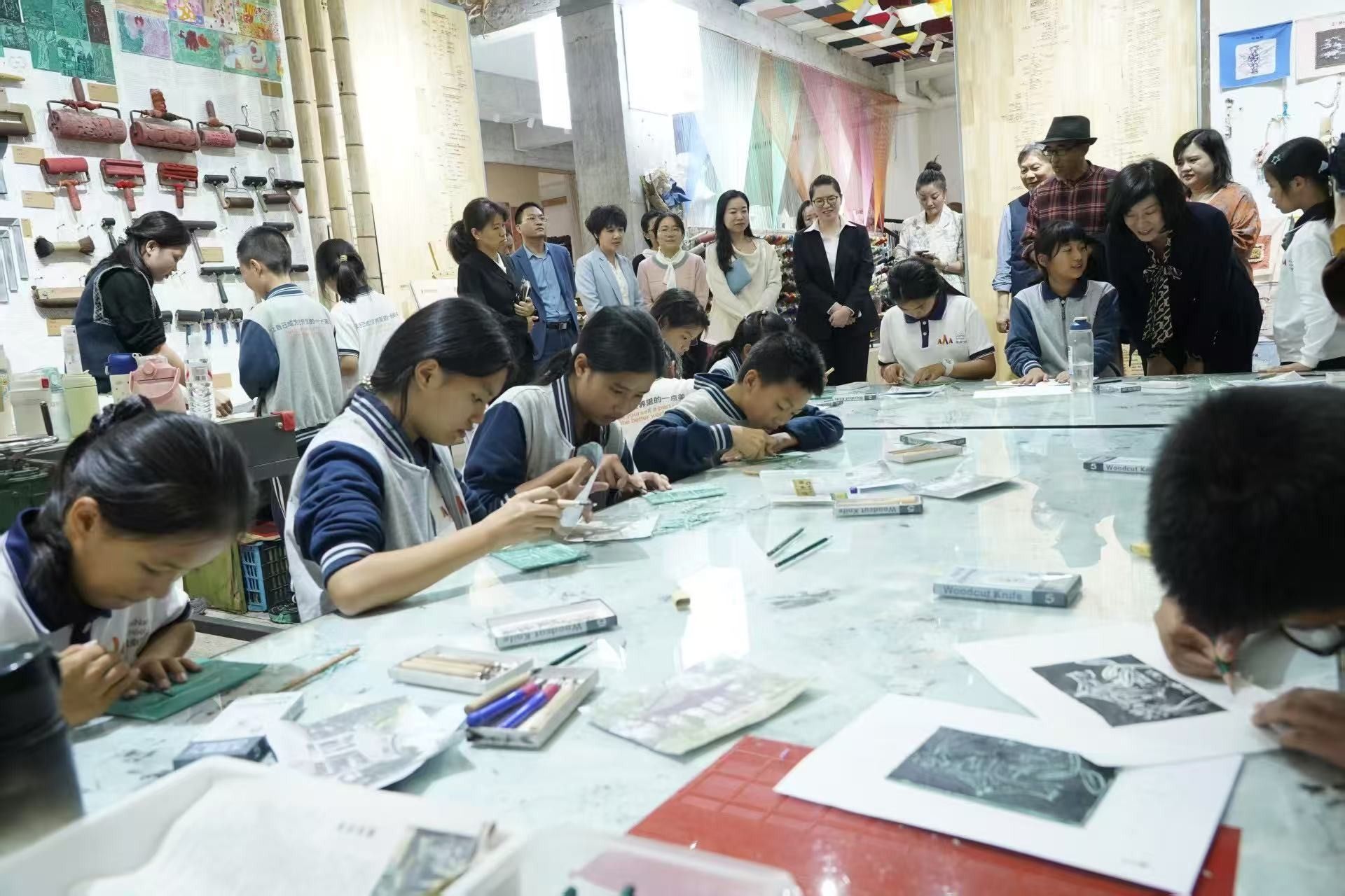在活動現場,記者看到一群特殊的客人,他們是來自桂南學校的學生。他們在桂南兒童美術館內現場以馬溪村牌坊為元素進行版畫藝術創作,并將制作的作品送給到場的嘉賓們。