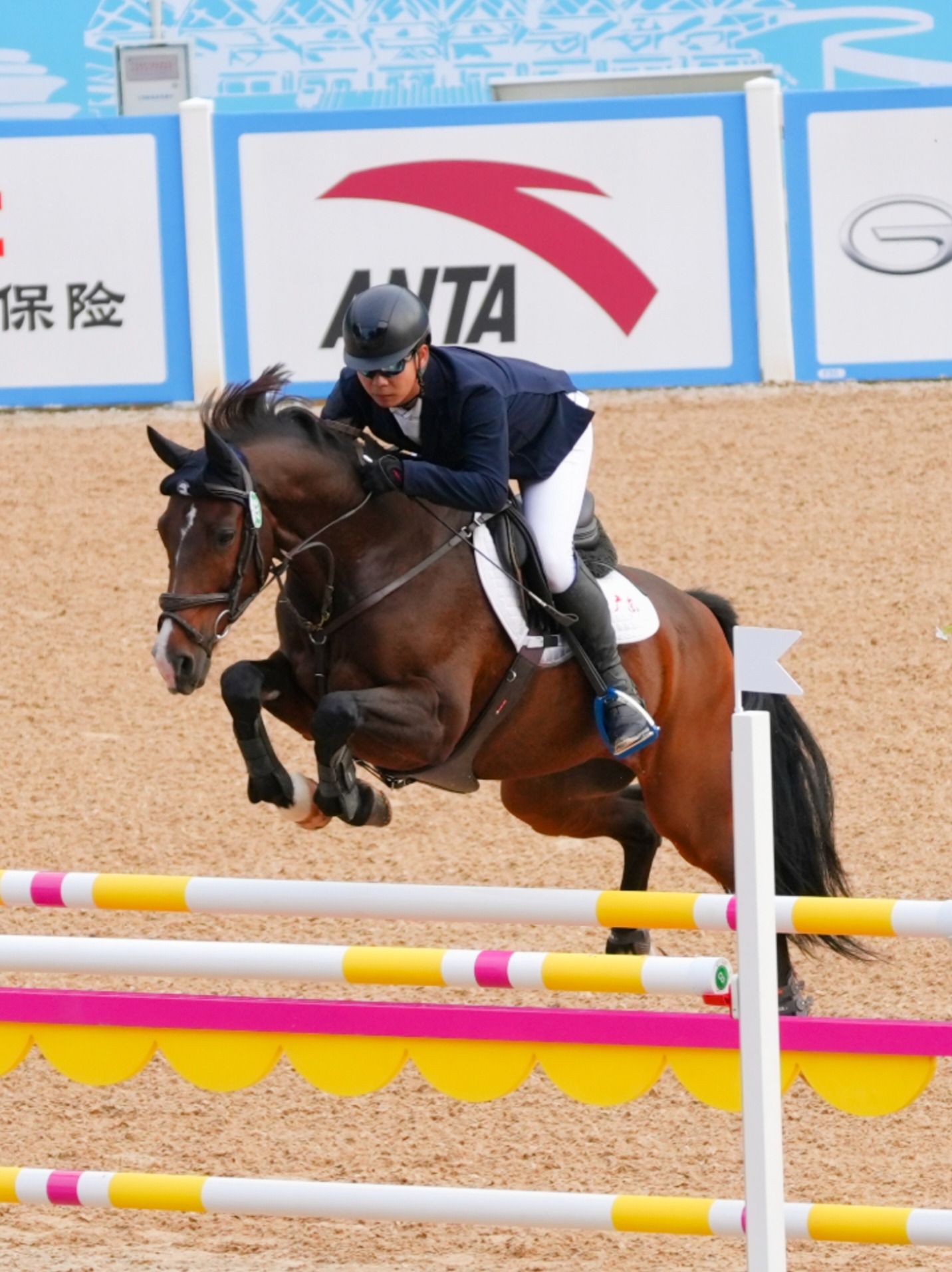 11月15日,41歲的中山馬術名將梁銳基攜馬匹“凱麗”率領廣東隊在十五運會馬術三項賽場地障礙賽中,以99.5總罰分,奪得馬術三項賽團體金牌。這也是梁銳基第七次出征全運會,廣東隊奪冠的騎手中,還有另外一名來自中山的隊員藍志豪,同樣在賽事中展現了高水準的競技與保障水平。江蘇隊和上海隊位列團體賽第二、三名。