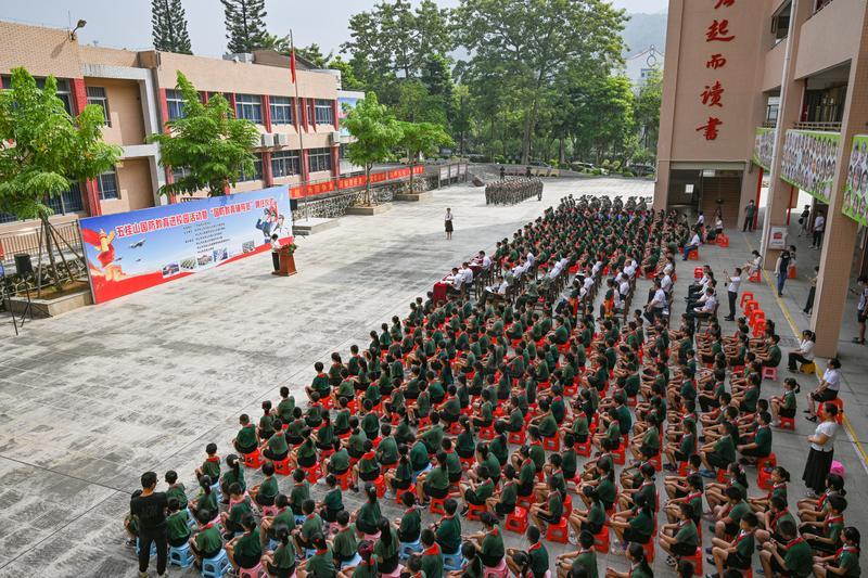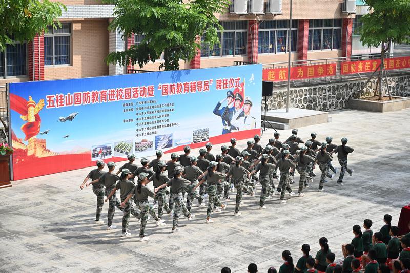 9月18日上午,嘹亮莊嚴的國歌響徹校園上空,冉冉升起的國旗隨風飄揚。 今日是九一八事變90周年紀念日,也是我國第21個全民國防教育日。為全面樹立廣大青少年的國防意識,進一步弘揚愛國主義精神,把國防教育工作做好做強做實,五桂山街道在五桂山學校舉辦國防教育進校園活動暨“國防教育輔導員”聘任儀式,中山軍分區司令員李云濤出席活動。