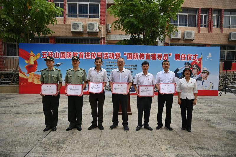 五桂山學校校長陳玉玲現場為6名國防教育輔導員頒發聘任證書,這意味著中山首批6名“國防教育輔導員”正式上崗。據了解,此次聘請的國防教育輔導員有軍隊轉業干部、參戰退伍老兵、革命老戰士后代、優秀共產黨員、武裝部專武干部、村(社區)民兵連干部及優秀基干民兵。國防教育輔導員將協助學校開展軍事訓練、為學校中小學生進行國防教育授課、圍繞建軍節、國慶節、全民國防教育日等節日開展進校園宣傳教育活動,將國防教育融入愛國主義教育課題,引導學生牢記歷史、不忘過去,緬懷先烈、面向未來,激發愛黨愛國熱情,凝聚奮進力量。