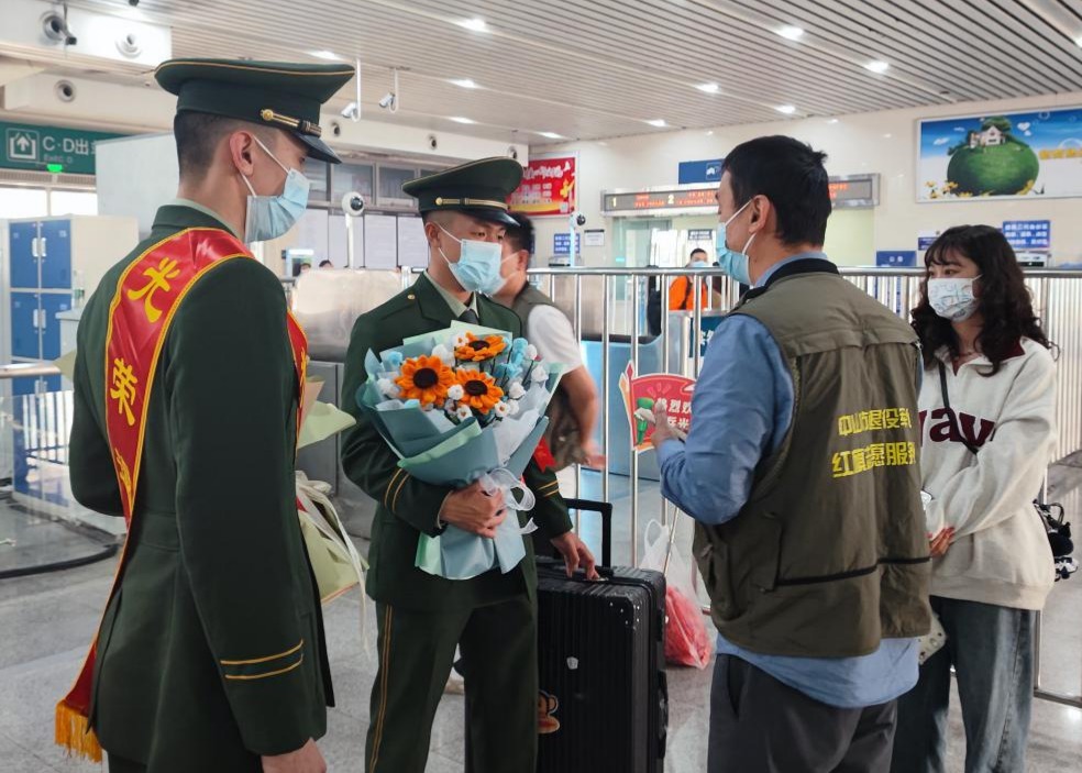 3月1日,中山市坦洲鎮退役軍人服務中心工作人員會同退役士兵家屬前往珠海明珠站迎接中山市2023年首批春季退役士兵平安返鄉。在車站出口,工作人員為退役士兵獻上鮮花,退役士兵與家人深情相擁,“最可愛的人”返鄉第一時間就感受到了來自家鄉及親人的貼心服務和溫暖。