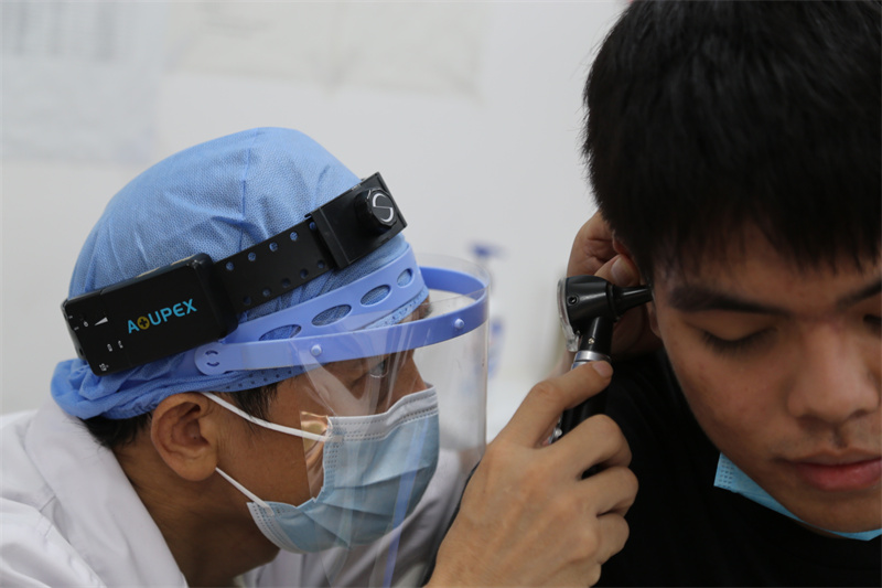南區醫院抽調各業務科室30余名骨干組成征兵體檢隊,嚴格按照征兵體檢程序和規范組織開展兵檢工作,對照《應征公民體格檢查標準》,有序開展五官、血壓、聽力、視力、內外科等檢查項目。整個體檢過程嚴謹細致,努力篩選出身體素質好的優秀青年輸送到部隊。 現場還舉行征兵啟動儀式,參檢人員逐一在現場報名板上鄭重簽下自己的姓名。來自城南社區的大學畢業生黃堅高興奮地表示,這是自己第三次參加征兵體檢了,之前的身體問題已經通過治療糾正,希望這次體檢能順利通過,能用學識和智慧為國防事業貢獻力量,在軍營綻放熱血青春。  ▲現場舉行了簡單的啟動儀式