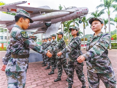 “向右看齊!向前看!現在教你們軍人隊列動作中的脫帽戴帽要領……”3月21日下午,在中山市國防教育基地訓練場上,一支七人訓練小隊顯得格外特別,她們是今年上半年應征入伍的中山女兵:梁晶、馮妙瑩、藍宇瑩、陳琬琪、溫黎嘉茵、劉燕彤、蘇汶詩。 她們都是00后女大學生,身著迷彩服,精神抖擻地在教官羅偉進的帶領下有序而緊張地開展隊列訓練?!捌叨浣鸹ā鼻酀赡鄣哪樕蠈憹M了對軍旅生活的向往和期待。她們將通過幾天的役前教育訓練,邁出軍旅生活第一步。 ■五次報名應征終圓夢 七朵金花中,沙溪鎮占據兩席名額,她們分別是藍宇瑩和劉燕彤。沙溪鎮武裝部工作人員劉偉立說:“從歷年來看,這次是我們鎮出女兵人數最多的一次。其中,龍聚環村民小組更是出兵大戶,幾乎每年都有男女兵從這里出。” 身高1.7米的劉燕彤就來自沙溪鎮樂群村(龍聚環村民小組),就讀于廣東海洋大學,是一名大二學生?!拔矣洃浿忻看未謇镉腥水敱胛?,都會舉行隆重的送兵儀式,整個村子鑼鼓喧天鞭炮齊鳴,還有舞獅表演助陣,好熱鬧。很小的時候我就覺得當兵很威風很光榮,在我心里也就埋下了要當兵的種子?!眲⒀嗤f:“我對部隊生活充滿了期待,進入部隊后我希望自己能考上軍校留在部隊長期發展。” 藍宇瑩來自沙溪鎮匯源社區,就讀于廣東技術師范大學,是一名大三學生。她曾在網上報名應征了5次,可見其參軍入伍決心之大?!拔覐男【秃艹绨蒈娙?,從小學一直到大學都是學校國旗護衛隊的隊員?!彼{宇瑩表示,幸運的是今年3月份,自己終于圓夢軍營即將前往某戰區海軍服役。 藍宇瑩的母親錢梅香表示:“我非常支持女兒的決定,感覺入伍對女生來說是一種很好的鍛煉。如果有機會,我還想讓小兒子上大學后也進入部隊參軍報國,向姐姐學習?!?/p> ■對軍營生活充滿期待 七朵金花中,來自南朗街道下沙村的馮妙瑩就讀于廣東醫科大學,今年6月份大學畢業。“我們做家長的就是希望她入伍后好好干,加油努力。”馮妙瑩的父親不善言辭,非常支持女兒的從軍決定,“我年輕時也想當兵,但身體條件不合格,錯失了機會?!?/p> “我大一就加入了學校國旗護衛隊,通過日復一日的隊列訓練,開始向往激情如火的軍營生活?!瘪T妙瑩告訴記者,“對即將到來的部隊生活,既期待又有點擔心。擔心去到一個陌生的環境會不適應,但既然選擇了這條路,我一定會克服困難,堅持下去,爭取留在部隊發展,早日成為一名優秀軍人?!?/p> 來自民眾街道的梁晶就讀于南華大學,今年6月即將大學畢業。她剛進入大一就提交了入黨申請書,2022年正式成為一名共產黨員。梁晶說:“2021年河南特大暴雨期間,通過新聞媒體看到中國軍人逆流而上,連夜出征轉移群眾的場景讓我深受感動。那時起,我就萌生了參軍的想法?!毙疫\的是,她今年終于圓夢軍營,她表示:“面對未知的軍營生活,我已經作好了心理準備。進入部隊后,我一定會好好適應,有信心能在部隊干好?!?/p> 臨近傍晚,一天的訓練就要結束了,中山市國防教育基地門口上方一條寫著“保家衛國終不悔,綠色軍營獻青春”的紅色橫幅迎風招展,不遠處的軍營生活正等著中山這“七朵金花”的到來,她們也在憧憬著…… 記者 張倩 ◆編輯:龍慧◆二審:鄭沛鋒◆三審:周亞平 |