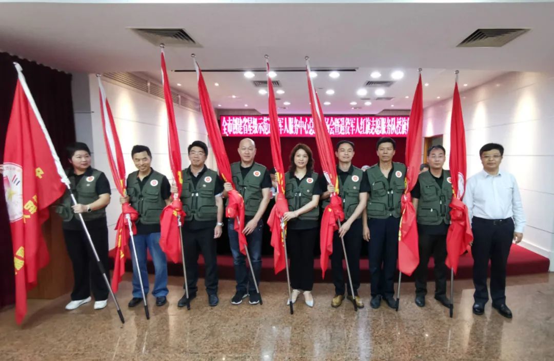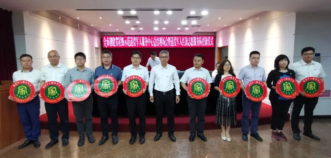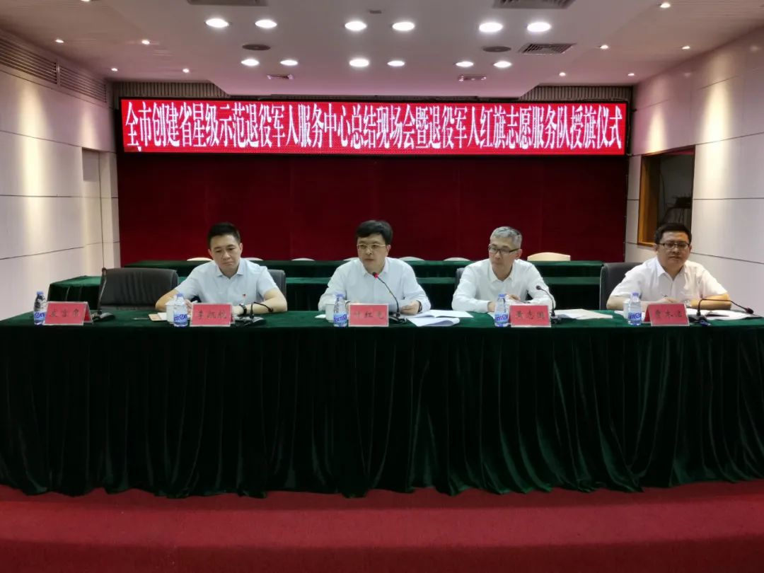 隨后,全體人員參加了全市創建省星級示范退役軍人服務中心總結現場會暨退役軍人紅旗志愿服務隊授旗儀式。