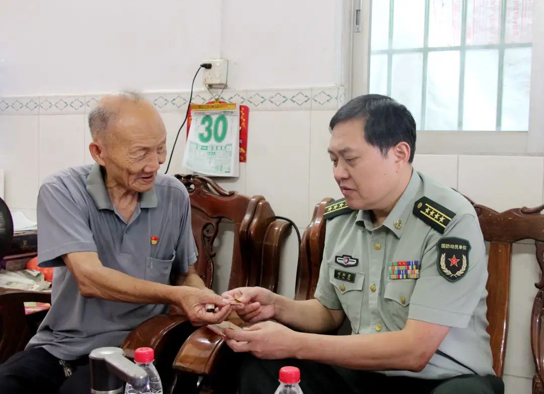 在“八一”建軍節(jié)即將到來之際,7月30日上午,市委常委、中山軍分區(qū)政委劉燦瑩來到橫欄鎮(zhèn),走訪慰問部分退役軍人,為他們送去黨和政府的親切關(guān)懷,祝福他們建軍節(jié)快樂、身體健康、家庭幸福。鎮(zhèn)領(lǐng)導(dǎo)林培華、葉劍榮、高桂冰等陪同慰問。 周七友,今年80歲,是橫欄鎮(zhèn)橫東村一名有著54年黨齡的退伍老兵。1959年,18歲的周七友參軍入伍,成為一名軍人。1968年,周七友光榮退伍。 1959年到1968年,周七友獲得了許多獎項與勛章,這些勛章他都悉心保存,非常有意義和價值。 “這幾枚是'五好戰(zhàn)士'稱號徽章。當(dāng)年戰(zhàn)士們積極響應(yīng)黨中央號召,爭當(dāng)'五好戰(zhàn)士'。'五好'是指:政治思想好,三八作風(fēng)好,軍事技術(shù)好,完成任務(wù)好,鍛煉身體好”,多年過去了,周七友還清楚記得“五好”的具體內(nèi)容。“還有這一枚是‘技術(shù)能手’稱號徽章,當(dāng)時我能夠熟練地拆裝一整部車,所以就獲得了這枚‘技術(shù)能手’稱號徽章。這枚徽章我們一個班只有我獲得了。”