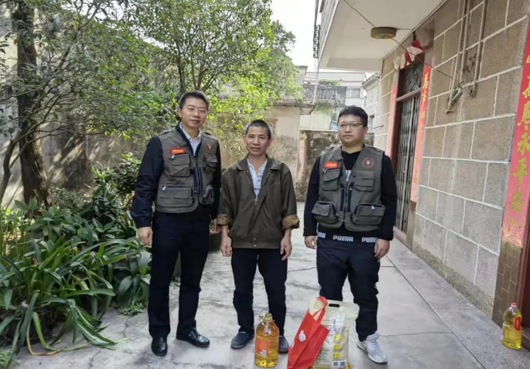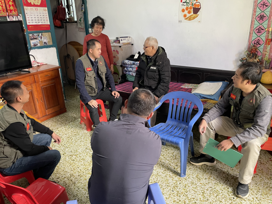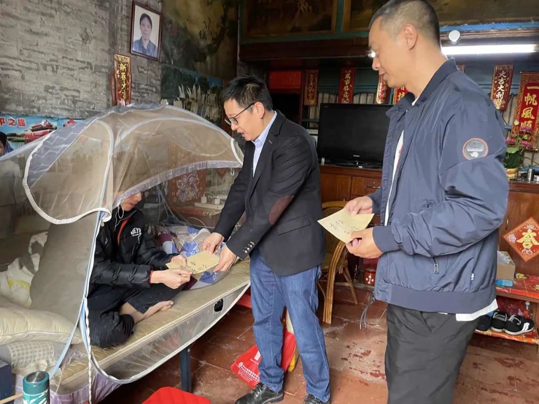 ▲沙溪鎮副鎮長黃家樂帶隊到港園村走訪慰問困難退役軍人