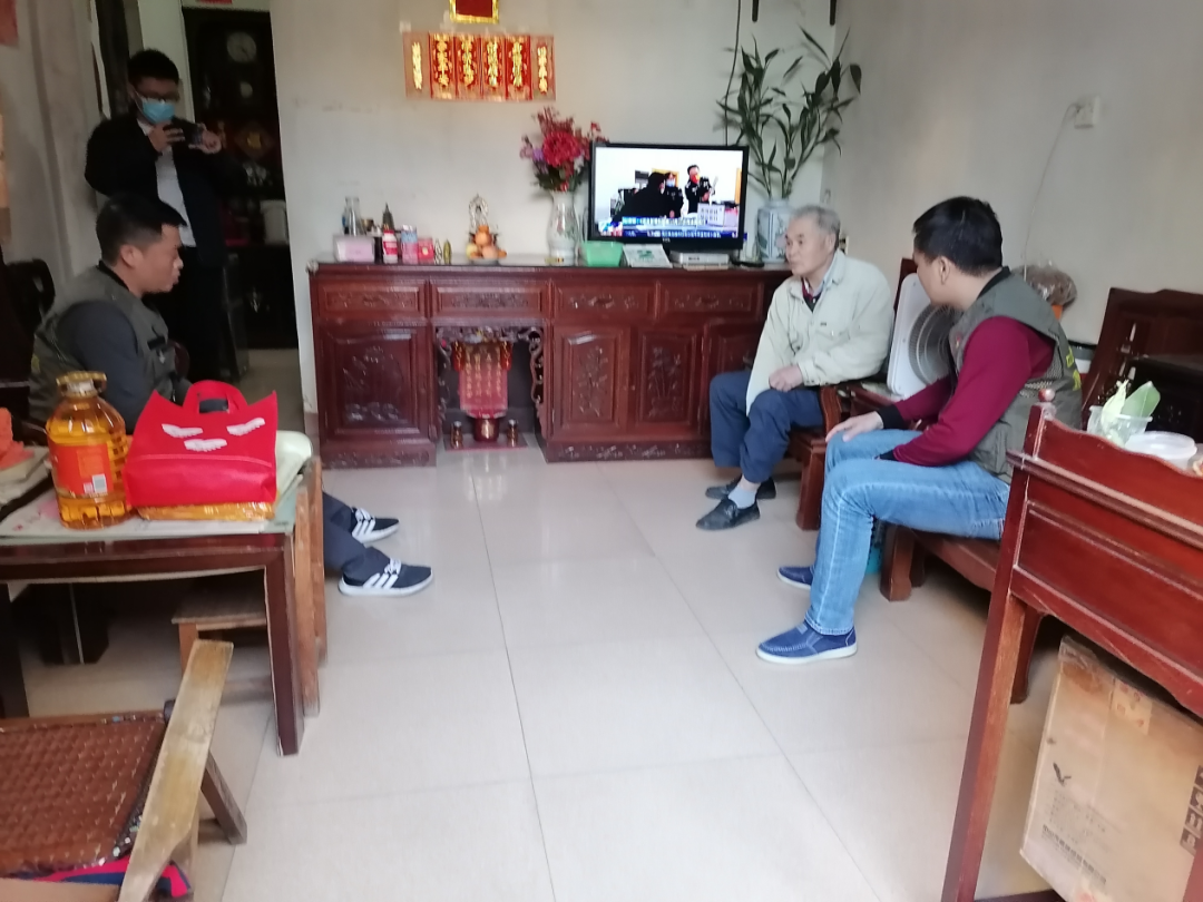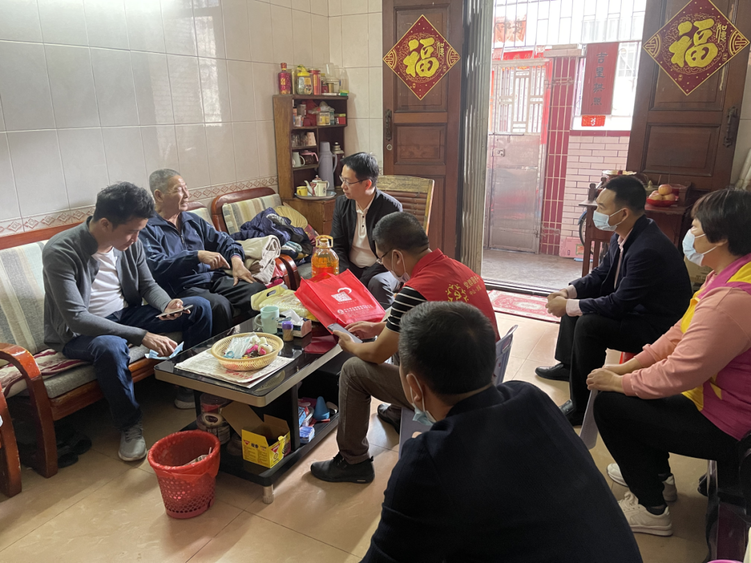 ▲沙溪鎮黨委委員、副鎮長黎宇彬帶隊到象角村走訪慰問