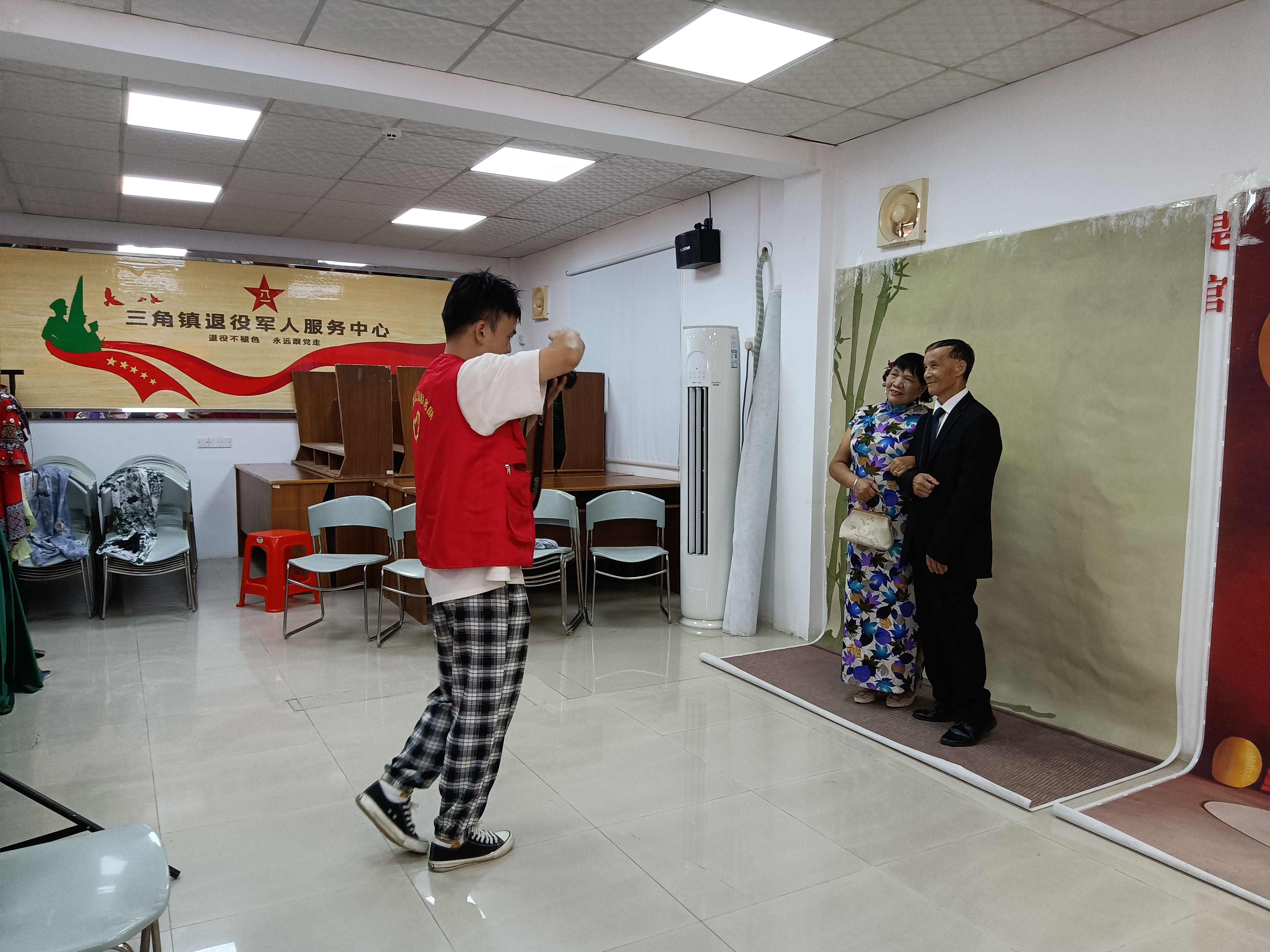 活動現場,三角鎮退役軍人服務中心的會議室被精心布置成臨時攝影棚,分為攝影區、化妝區、服裝區、選片區和等候區等多個功能區域,流程清晰、服務周到。工作人員耐心為退役軍人及家屬化妝、整理服裝、調整發型,細致指導拍攝姿勢與表情。攝影師一邊捕捉動人畫面,一邊認真傾聽老兵們講述崢嶸歲月。在輕松愉快的氛圍中,一個個拍攝任務順利完成,活動現場歡聲不斷、暖意融融。