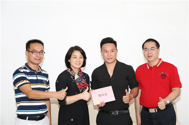 7月6日上午,橫欄鎮黨委書記馮金怡在橫欄鎮政府黨委樓接見了這名英雄,并將見義勇為的慰問金親自送到他手上。“你救下的不僅僅是一個孩子,更是一個家庭,你給整個社會帶來了滿滿正能量,向你致敬。”危急關頭見大義,馮金怡對賈合強的行為給予了肯定,并表示這是社會精神文明的體現,為他義不容辭的救人行為點贊。 “我上去以后發現這孩子很懂事,他才3歲,但是他一直在安慰媽媽不要哭。”回憶起當時的驚險場景,賈合強首先想到的還是孩子,“當低頭看到樓下有群眾自發高舉床褥保護我的安全,自己也很感動。另外,我還要感謝消防員,看到他們來了以后,心里頓時覺得安定下來。”賈合強謙遜說道,這是一場全社會的合力救援,大家的齊心協力,給了他力量。