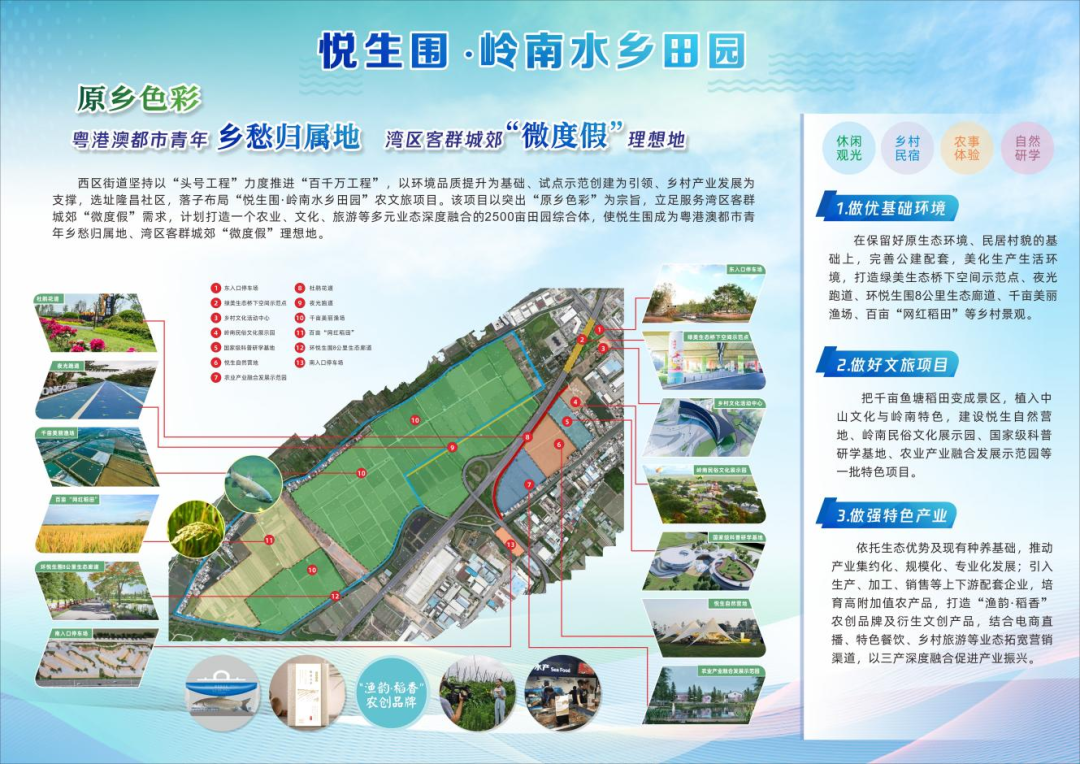 農(nóng)文旅融合添彩。采用“政府引導(dǎo)+社會(huì)資本”模式,投入2.3億元打造“悅生圍·嶺南水鄉(xiāng)田園”綜合體,有機(jī)串聯(lián)國(guó)家3A級(jí)景區(qū)荔景苑、2萬(wàn)平方米橋下空間、76畝悅生自然營(yíng)地、1300畝美麗漁場(chǎng)、250畝生態(tài)稻田、3.8公里田園健身步道、300平方米“哪吒墻”等資源,推出中山市首款非遺“醉龍咖啡”等特色產(chǎn)品,設(shè)計(jì)“農(nóng)業(yè)觀光+露營(yíng)研學(xué)+文化體驗(yàn)”精品旅游線路。深中通道通車后,累計(jì)接待游客超75萬(wàn)人次,拉動(dòng)消費(fèi)超3500萬(wàn)元。