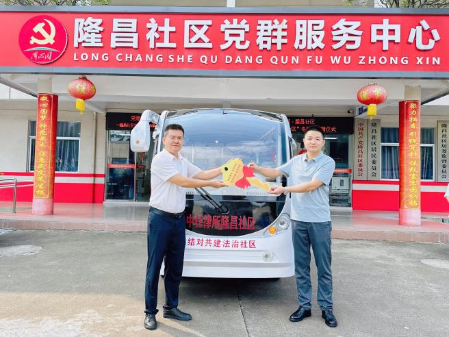 ▲中任律所為隆昌社區(qū)捐贈(zèng)14座法治電瓶車