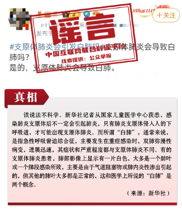 謠言1:感染肺炎支原體一定會得肺炎?會出現“白肺”?