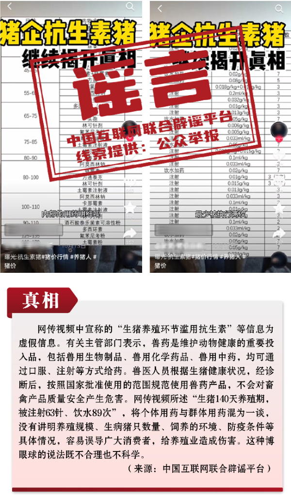 謠言10:生豬140天飼養周期內用34種抗生素?
