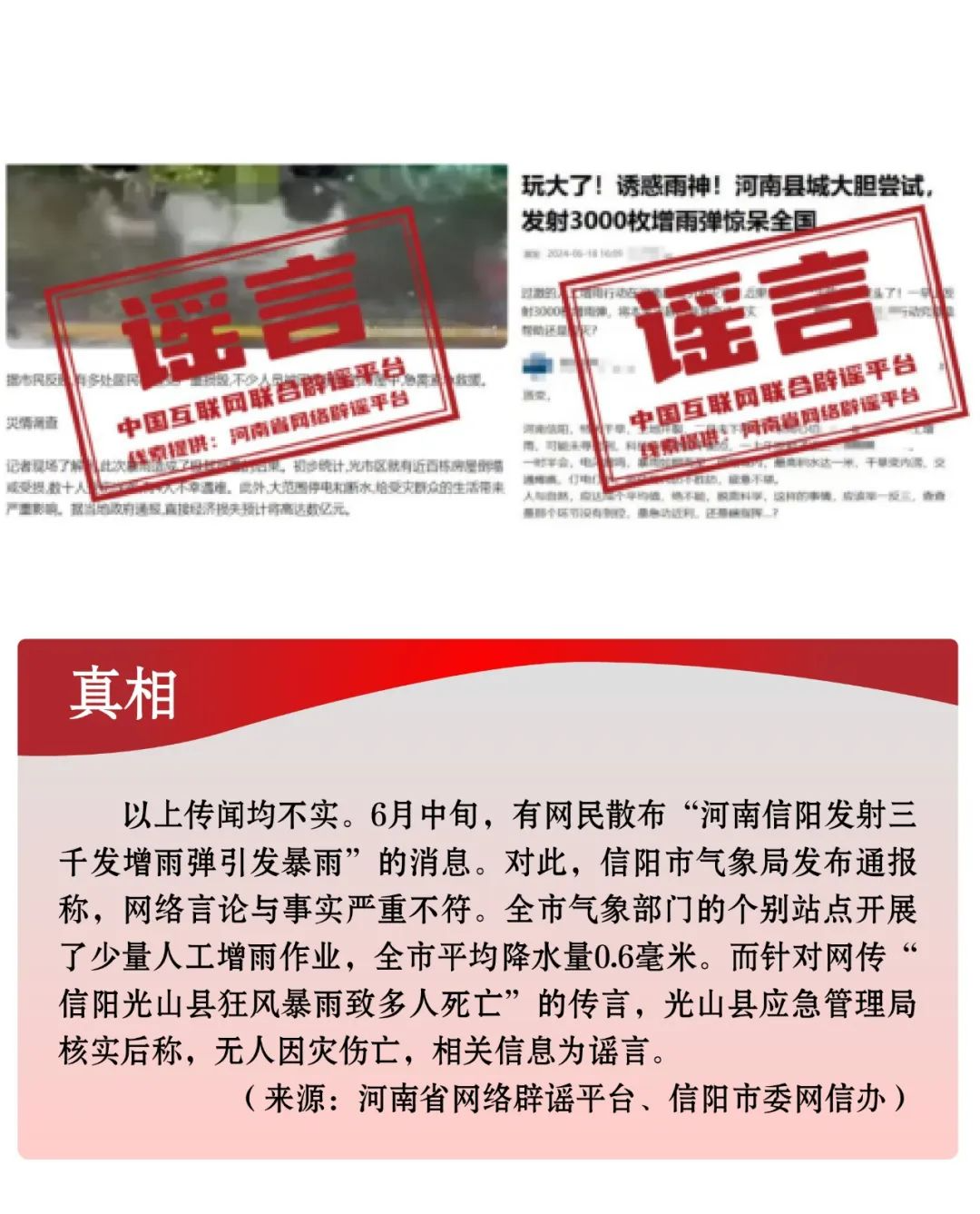 謠言7:河南信陽發射三千發增雨彈引發暴雨?信陽光山縣狂風暴雨致多人死亡?