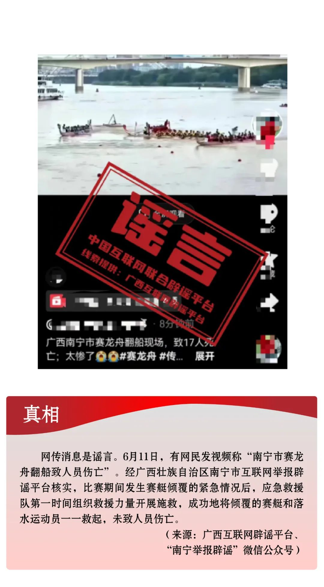 謠言6:廣西南寧市賽龍舟翻船致人員傷亡?