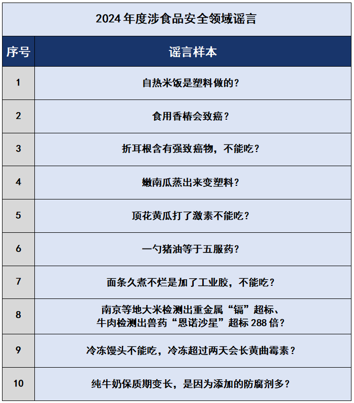 部分自媒體和網民利用人們對食品安全話題的關心關切,傳播涉食品安全相關不實信息,擾亂公眾視聽,販賣焦慮情緒。如“冷凍饅頭不能吃,冷凍超過兩天會長黃曲霉素”“頂花黃瓜打了激素不能吃”“食用香椿會致癌”“折耳根含有強致癌物,不能吃”等錯誤說法,以關注公眾身體健康的名義,發布偽科普信息,引發公眾擔憂和恐慌,擾亂正常生活秩序。還有一些別有用心之人,惡意杜撰“南京等地大米檢測出重金屬‘鎘’超標、牛肉檢測出獸藥‘恩諾沙星’超標288倍”等謠言,嚴重歪曲事實,企圖制造輿論恐慌,擾亂市場經營秩序。而“嫩南瓜蒸出來變塑料”“自熱米飯是塑料做的”“面條久煮不爛是加了工業膠,不能吃”等傳言聳人聽聞,夸大其詞,不僅干擾消費者判斷,還對相關行業發展造成不良影響。