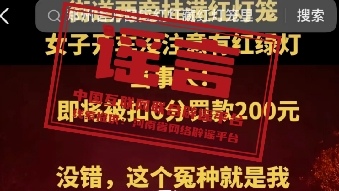 真相:近日,河南省鄭州市公安局中原分局西流湖派出所民警發現,轄區內有自稱“女司機”的網民在網絡上散布“鄭州一道路掛滿紅燈籠,導致自己看不清紅綠燈,結果誤闖紅燈被扣6分罰款200元”的信息。經民警調查,發布者實為一名男子,內容純屬杜撰。這名男子交代自己想開家網店,為博眼球編造視頻。目前,民警已對造謠者進行處罰。(來源:“網信鄭州”微信公眾號)
