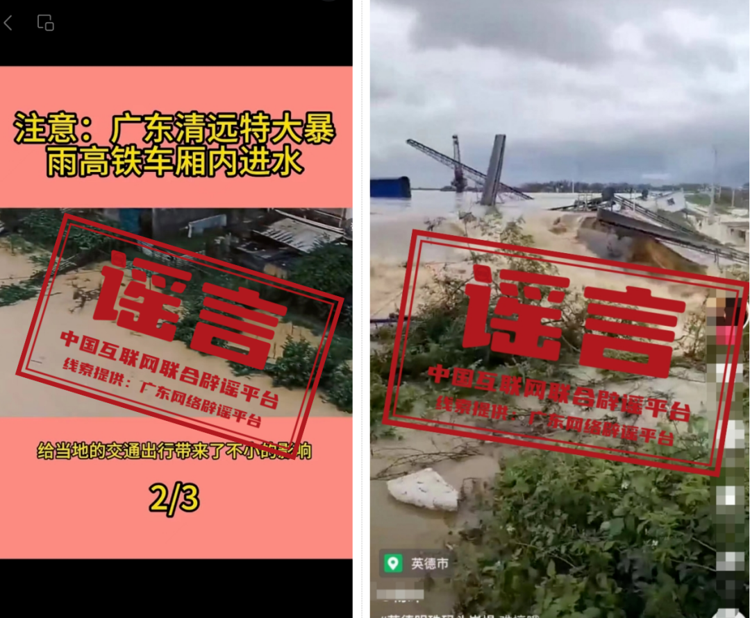 真相:近日,廣東省清遠市出現持續性大暴雨局部特大暴雨,有網上流傳視頻稱,4月20日“途經清遠的高鐵列車車廂內進水”“多趟經停清遠站列車停運和折返”。對此,高鐵清遠站相關負責人表示,網上流傳視頻并非發生在途經清遠的高鐵上。18日8時到20日8時間的極端天氣并未影響到清遠境內的高鐵運行,期間高鐵運行正常,網上流傳的“清遠境內高鐵車廂進水和折返”的短視頻與事實不符。