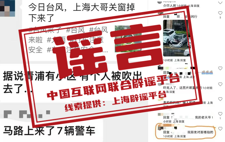 真相:臺風“貝碧嘉”影響上海期間,社交平臺和部分聊天群出現上海某小區居民被臺風從高樓吹落的消息,有的說在青浦區、有的說在閔行區。經核查,該視頻內容系外省市有人輕生跳樓。個別違法人員在不知道事發地點和墜樓原因的情況下,為博取流量而張冠李戴,將事發地編撰為上海浦東、閔行、青浦等地,并發布在網上,引起群眾恐慌,造成惡劣社會影響。目前,8名編造傳播謠言的違法人員均已被警方依法處罰。(來源:“上海網絡辟謠”微信公眾號)