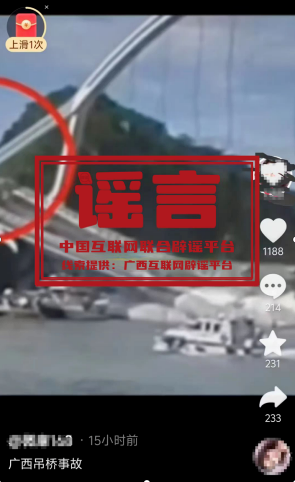 謠 言 廣西發生吊橋垮塌事故?