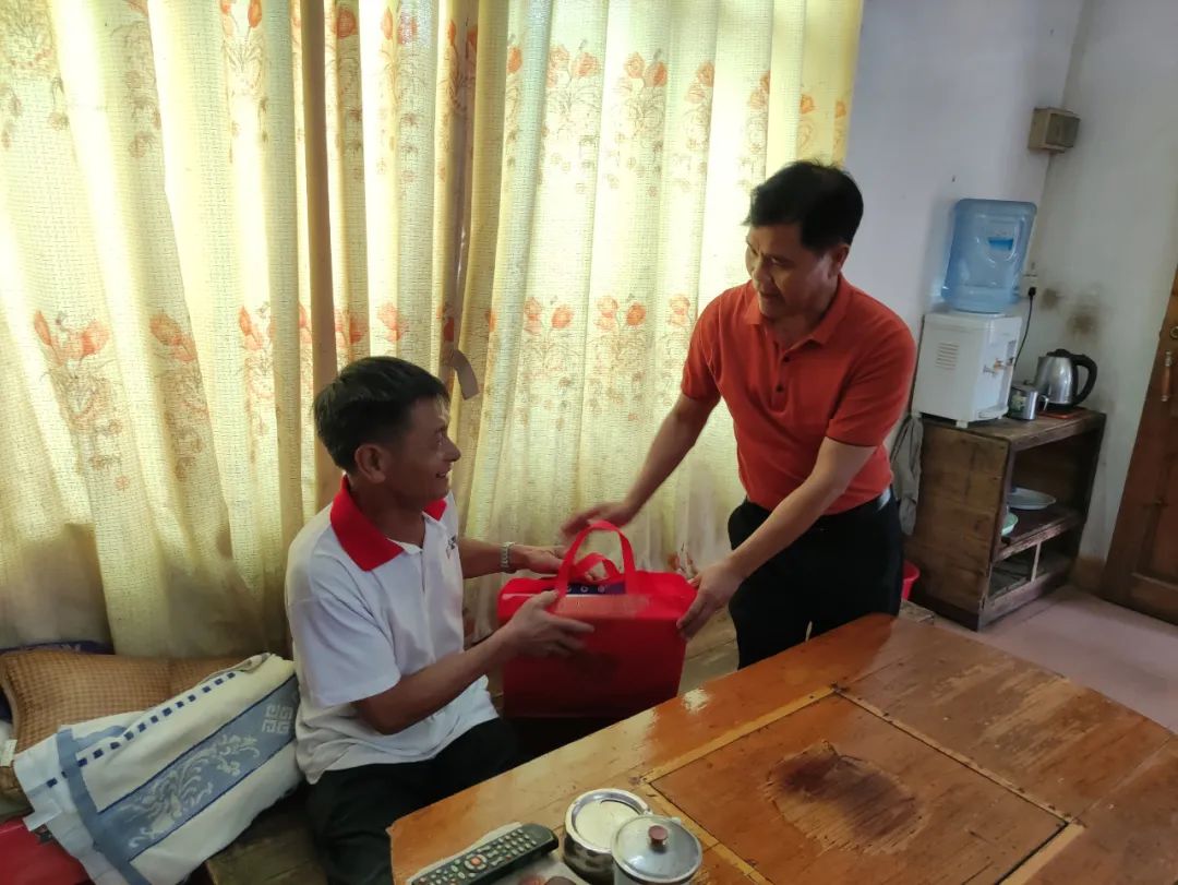 座談會后,副鎮長郭永波帶隊,鎮武裝部、鎮退伍軍人服務中心、義倉村組成慰問隊,走訪慰問民眾鎮的退役軍人陳元添和梁錫洪,給他們送去黨和政府的關懷,提前向他們致以節日祝福,感謝他們及其家屬對祖國、對人民、對部隊所作出的貢獻。