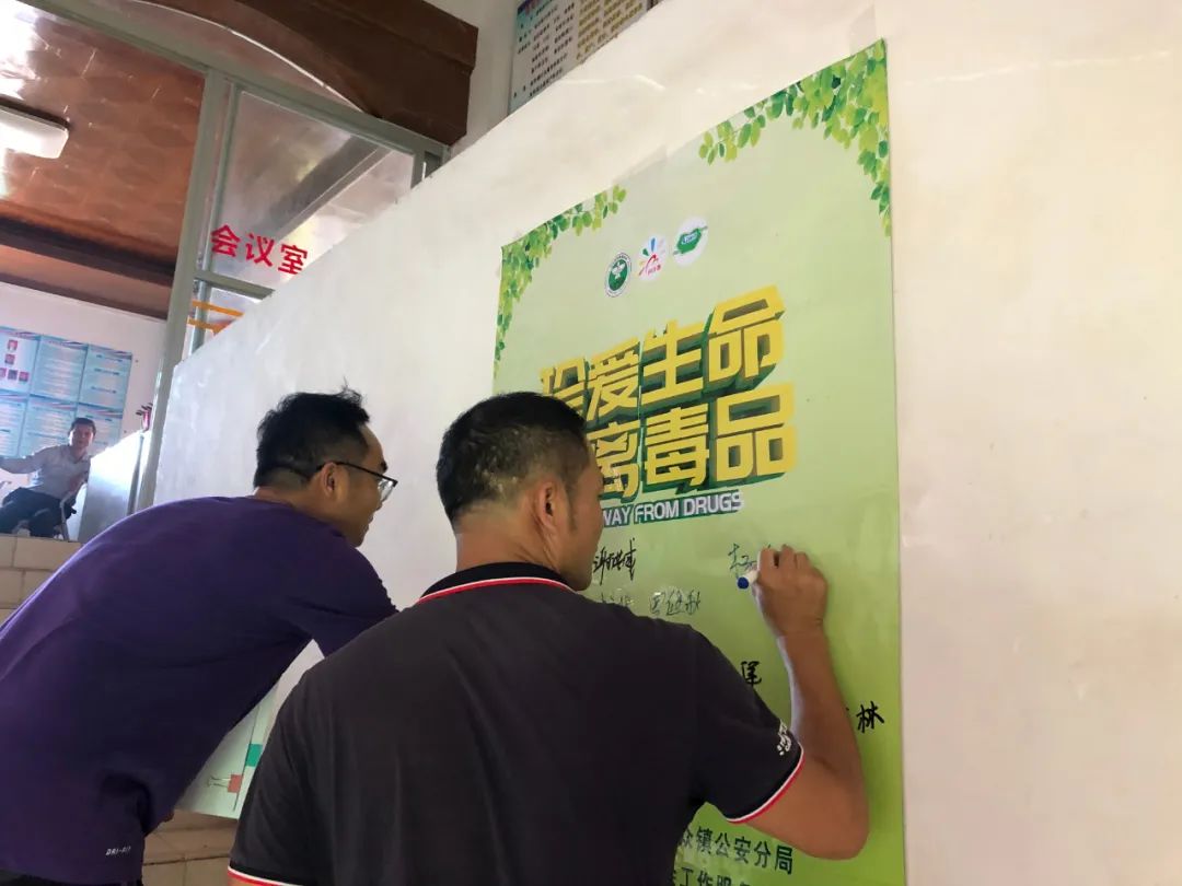 活動最后,在向日葵禁毒社工的帶領下,退伍軍人舉手表態,自覺抵制毒品誘惑,主動參與禁毒斗爭,并且在禁毒宣傳背景墻上簽名以表禁毒決心。