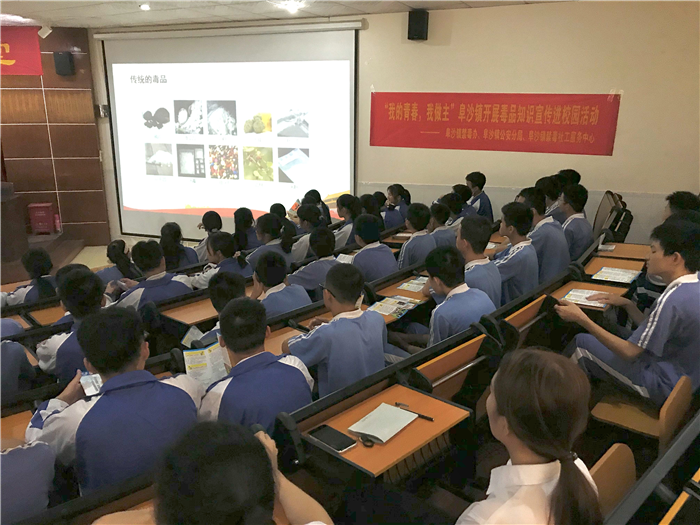 活動現場,鎮禁毒辦專干和禁毒社工通過派發宣傳單張、介紹仿真毒品模型、講解禁毒PPT、口號宣誓、有獎問答等方式向學生們普及禁毒防毒知識,力求從根源上打造無毒校園。