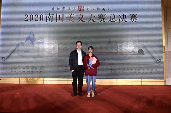 一城誦讀,全域共享!12月20日下午, 2020南國美文大賽總決賽在中山金鉆酒店舉行。經過激烈的角逐,最終,中山市東區遠洋學校初三學生徐樂瑤的作品《烏斯懷亞有點冷》獲得2020南國美文大賽冠軍,中共中山市委常委、宣傳部長林銳熙出席總決賽并為冠軍作者徐樂瑤頒獎。